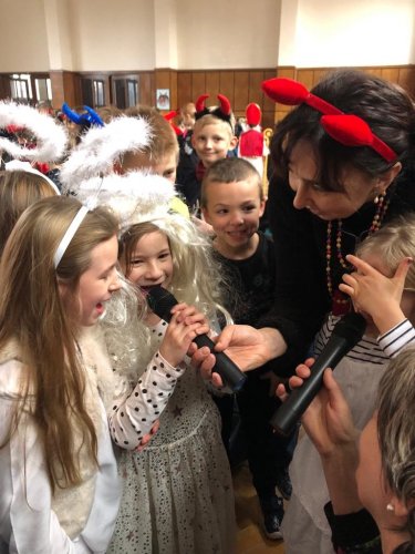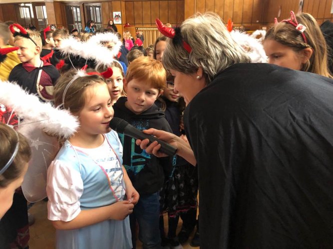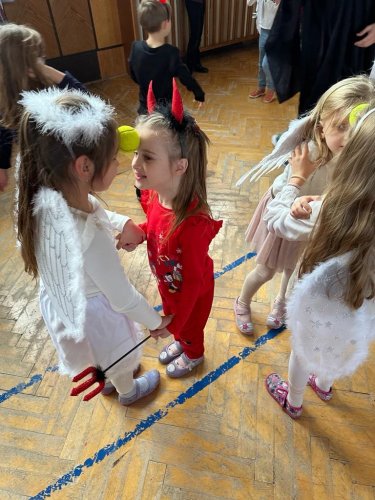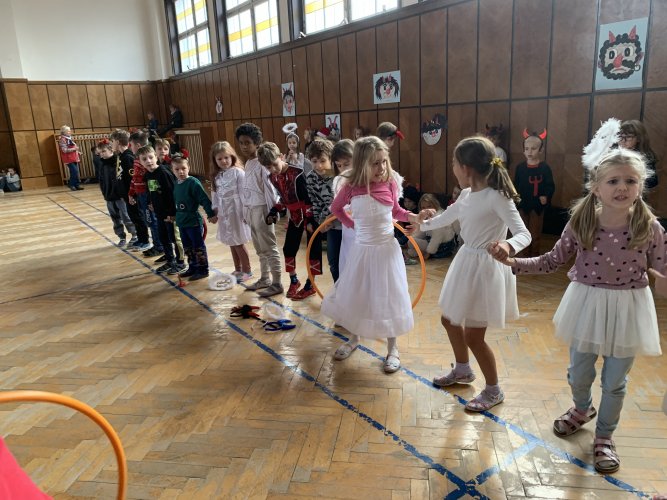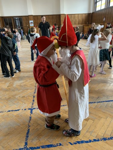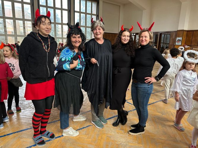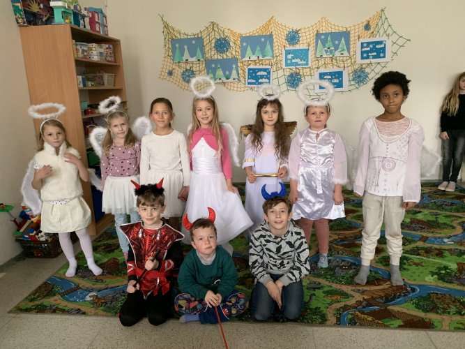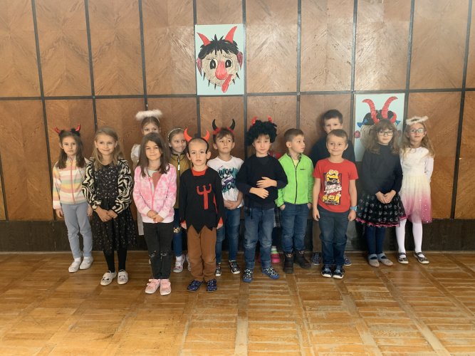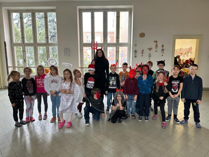 Ve čtvrtek 30. listopadu 2023 se sešlo asi 180 čertíků, čertic a andílků ve školní aule. Na tuto akci jsme se pečlivě připravovali. Vyráběli jsme různými technikami čerty a anděly, kterými jsme vyzdobili aulu a družinu. Na diskotéce jsme se prima pobavili při tancování, soutěžích a závodění, nechyběla ani sladká odměna.