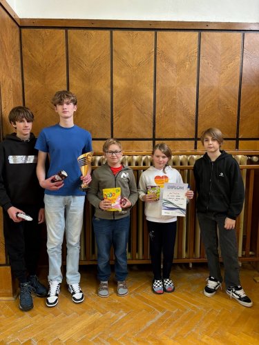 První tři školy v pořadí získaly pohár, každá škola diplom a všichni účastníci za odvedený sportovní výkon drobnou cenu. Dvě družstva z každé kategorie postupují do krajského přeboru škol v šachu, který proběhne v březnu v Třebechovicích. Závěrem děkuji panu řediteli Petru Sadílkovi za poskytnutí prostor pro konání soutěže, ředitelce turnaje Svatavě Ptáčkové a všem účastníkům za sportovní chování po celou dobu turnaje, protože bylo vidět, že šachy jsou vhodným sportem pro školní prostředí.