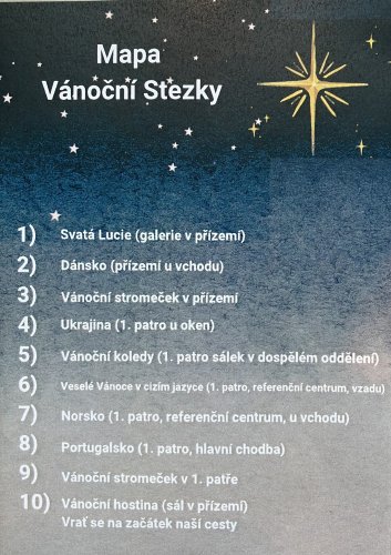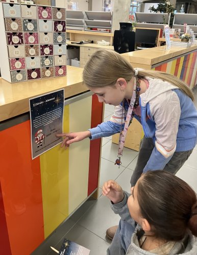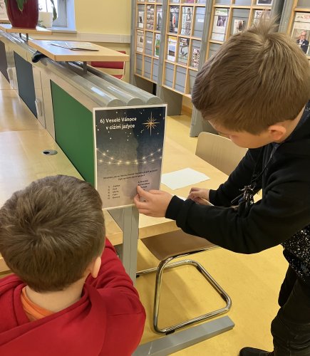 Městská knihovna U Velryby měla pro děti připravený opět zajímavý a poutavý interaktivní program „Vánoční stezka“, na kterém nemohli chybět žáci 5. B. Na deseti stanovištích rozmístěných po prostorách knihovny plnili žáci ve dvojicích či individuálně úkoly související s obdobím adventu. Odměnou za správné vyřešení všech úkolů jim byla vánoční hostina v podobě ochutnávky nápojů i sladkostí pocházejících z Itálie, Německa, Francie či Holandska. Moc děkujeme a už teď se těšíme na další květnovou návštěvu.