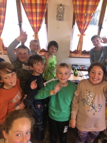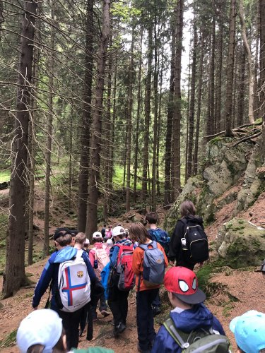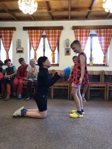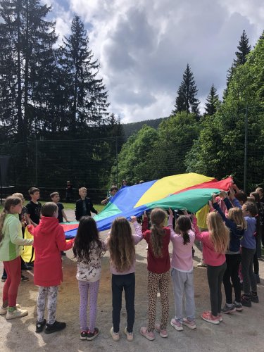 Ve středu jsme stihli nákupy v Peci pod Sněžkou a došli jsme kousek pod Obří důl. Další den jsme si moc užili. Našli jsme poklad a celou školu v přírodě jsme zakončili diskotékou. Teď už všichni spíme a těšíme se na vás.