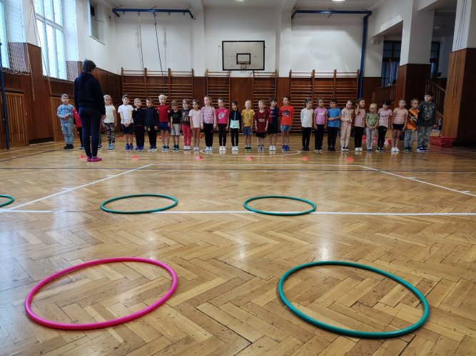 Žáci prvních tříd se v sobotu 12. 10. 2024 zúčastnili "Sportovního dopoledne". Děti si vyzkoušely nejrůznější disciplíny - skok na trampolínce, jízdu na koloběžkách, hod na cíl, chůzi na chůdách, cvičení s obručemi a mnoho dalších. Všichni si sobotní dopoledne příjemně užili a za vynaložené úsilí dostali na památku